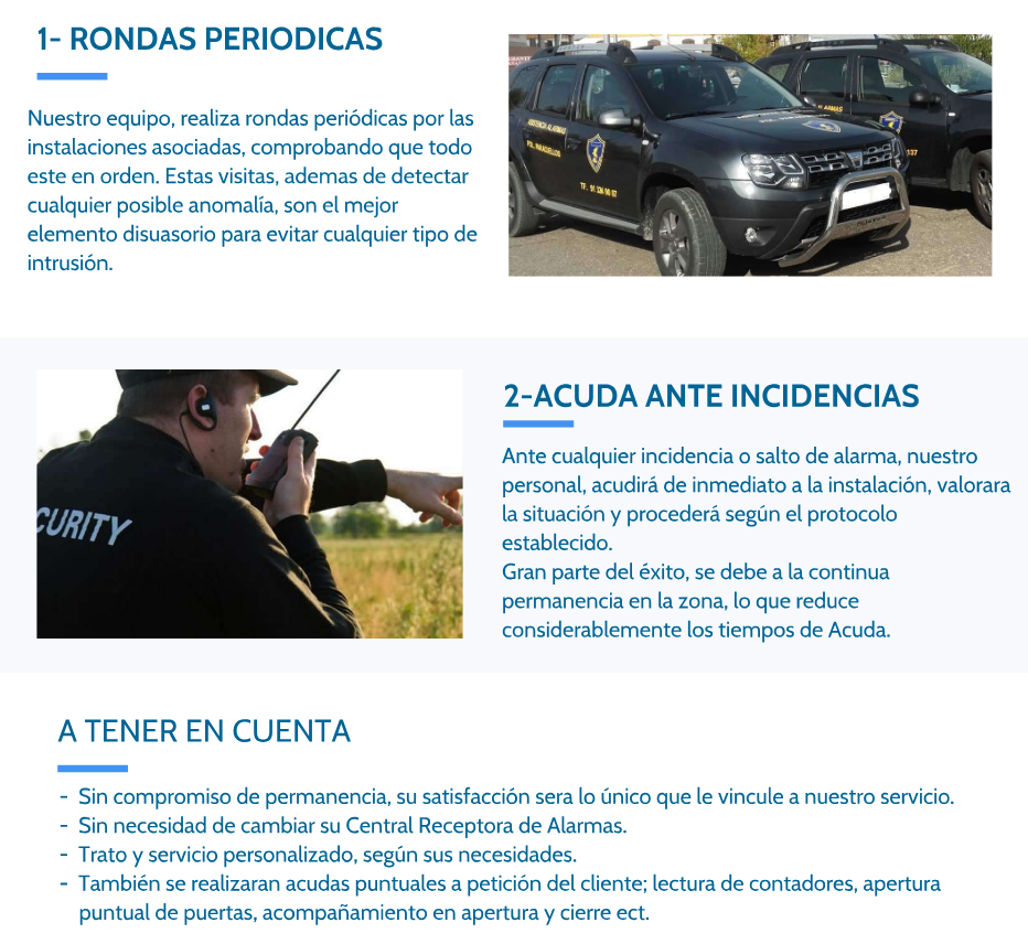 Gestionamos inmuebles, cubriendo cualquier necesidad que puedan tener relacionada con la seguridad; sistemas de alarmas, acudas, rondas y servicios para prevención de okupaciones.